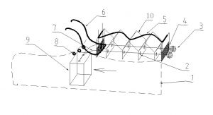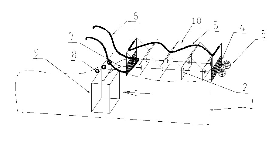 随行式鞋口护罩,属鞋子卫生防护领域,所要提供一种方便的鞋口护罩,利用人脚尖伸进鞋内脚尖套,随穿鞋动作拉动线绳使折扇状护罩折叠,脱掉是护罩上的弹簧自动弹开是护罩展开覆盖鞋口,实现鞋罩自动方便护鞋口。穿时自动折叠,脱时自动展开,护住鞋口,让其随时为你的鞋内卫生护航 。